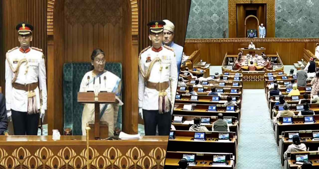 नई दिल्ली : संसद के बजट सत्र की शुरुआत हो गई है. राष्ट्रपति द्रौपदी मुर्मू ने दोनों सदनों के संयुक्त सत्र को संबोधित किया. राष्ट्रपति के संसद पहुंचते ही उन्हें गार्ड ऑफ ऑनर दिया गया. इस दौरान उपराष्ट्रपति सीपी राधाकृष्णन, प्रधानमंत्री नरेंद्र मोदी, लोकसभा स्पीकर ओम बिरला और संसदीय कार्य मंत्री किरेन रिजिजू ने उनका स्वागत किया. राष्ट्रपति मुर्मू ने अपने संबोधन में देश की विरासत, इतिहास और सांस्कृतिक एकता को याद किया. उन्होंने कहा कि देश ने श्री गुरु तेग बहादुर जी का 350वां शहीदी दिवस मनाया. वहीं, बिरसा मुंडा की 150वीं जयंती पर पूरे देश ने उन्हें श्रद्धांजलि दी और आदिवासी समाज के लिए उनके योगदान को याद किया.
