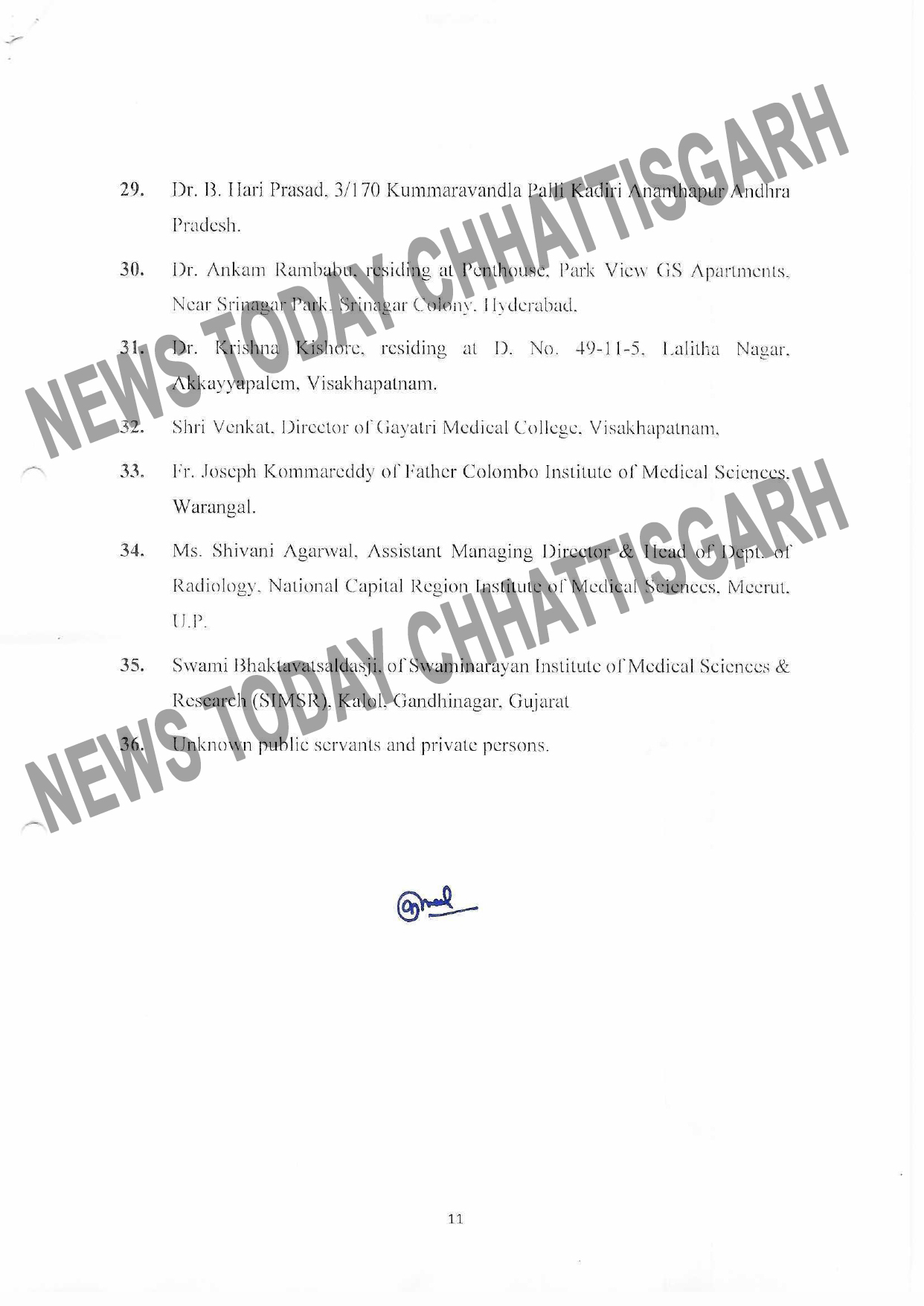 21. स्वामी भक्तवत्सलदासजी — स्वामीनारायण इंस्टिट्यूट ऑफ मेडिकल साइंसेज़ एंड रिसर्च (SIMSR), कालोल, गांधीनगर, गुजरात, को आरोपी बनाया गया है।