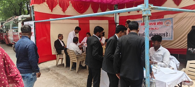 अदालत परिसर में आयोजित रक्तदान शिविर में एक ओर रक्तदान और सेवा का अनूठा महिमा मंडन चल रहा था, तो दूसरी ओर वकीलों का खून चढाने के अंदेशे से कई लोग हैरान – परेशान नजर आये | उनकी चिंता उन मरीजों के स्वास्थ्य को लेकर नजर आ रही थी, जिन्हे यहाँ से एकत्रित खून की बॉटल चढ़ाई जाएगी ? आम मरीजों की जान बचाने और जरुरत मंदो को रक्त मुहैया कराने की दिशा में अधिवक्ताओं के रचनात्मक कदमों पर शुरू हुआ विचार विमर्श का दौर मरीजों के भविष्य और स्वास्थ पर जा टिका | चर्चाओं के इस दौर में वकीलों के खून के महत्त्व पर कानून के जानकारों ने प्रकाश भी डाला |