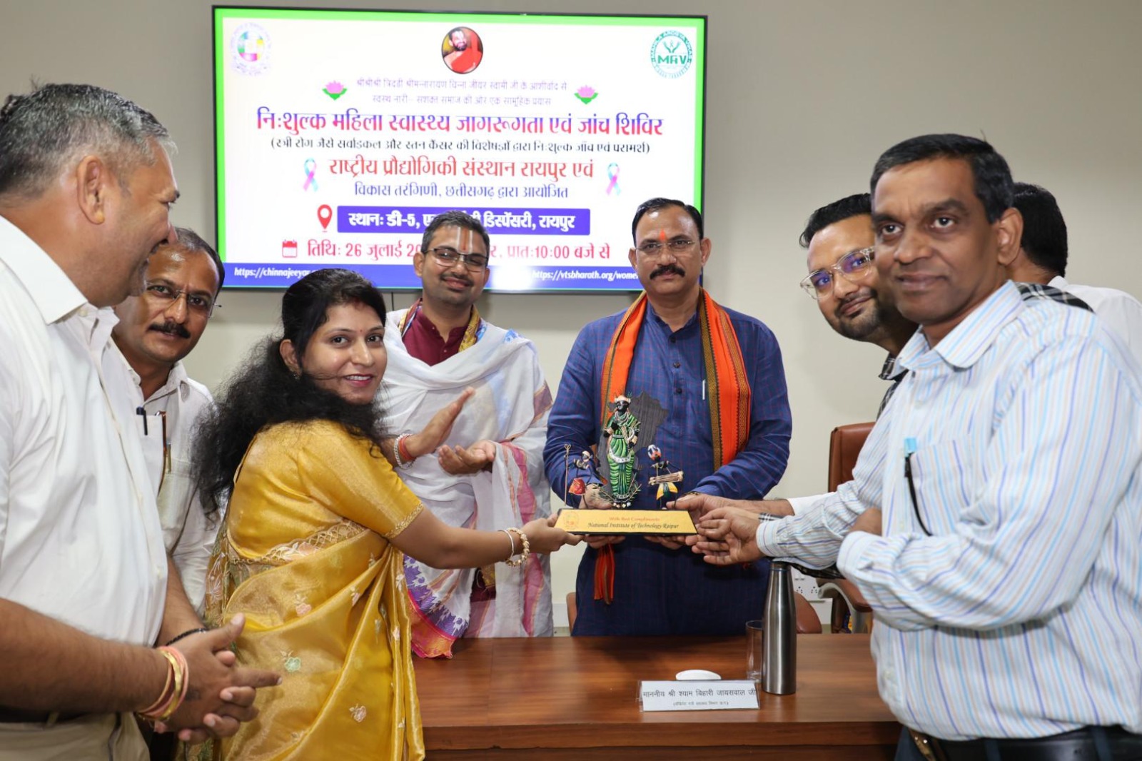 रायपुर : – छत्तीसगढ़ के स्वास्थ मंत्री श्याम बिहारी जायसवाल ने एलान किया है कि सरकारी योजनाओं के तहत मुफ्त और बेहतर इलाज के लिए सरकार प्रतिबद्ध है | उन्होंने कहा कि सरकारी स्वास्थ केन्द्रो में उन्नत और जरुरी इलाज की सभी सुविधाएं मुहैया कराने पर जोर दिया जा रहा है | स्वास्थ मंत्री जायसवाल ने एनआईटी रायपुर और विकास तरंगिणी द्वारा आयोजित नि:शुल्क महिला स्वास्थ्य जागरूकता एवं जाँच शिविर में हिस्सा लिया | महिलाओं के लिए नि:शुल्क स्वास्थ्य जागरूकता एवं जाँच शिविर में सैकड़ो महिलाओं ने शिरकत की | एनआईटी परिसर में आयोजित जांच शिविर और जागरूकता कार्यक्रम विशेषतः सर्वाइकल और ब्रेस्ट कैंसर जैसी गंभीर बीमारियों के लिए आयोजित किया गया था। यहाँ महिलाओं को नि:शुल्क जाँच, परामर्श और आवश्यक दवाइयाँ उपलब्ध कराई गईं। इस अवसर पर राज्य के स्वास्थ्य मंत्री श्री श्याम बिहारी जायसवाल ने प्रदेश की स्वास्थ सुविधाओं में बढ़ोतरी का दावा किया | उन्होंने शिविर में शामिल हुए लोगों और महिलाओं को बेहतर स्वास्थ्य सुविधाएं देने की सरकार की प्रतिबद्धता को दोहराया।