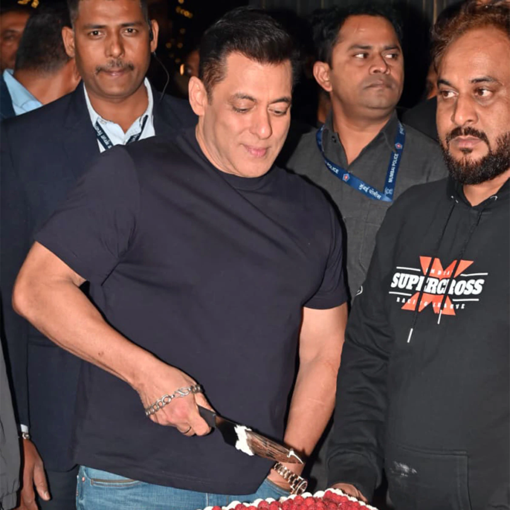 पपराजी के साथ केक काटते हुए सलमान ने बाहर खुशियाँ बांटी, जबकि अंदर की पार्टी में उनके माता-पिता सलीम खान और सलमा खान, भाई अरबाज खान और पत्नी सुशरा, बहन अर्पिता खान, दामाद आयुष शर्मा, भांजे अरहान और निरवान खान और बॉलीवुड के दिग्गज तब्बू, एमएस धोनी और साक्षी व जीवा, रणदीप हूडा, महेश मांजरेकर जैसे सितारे भी शामिल हुए।