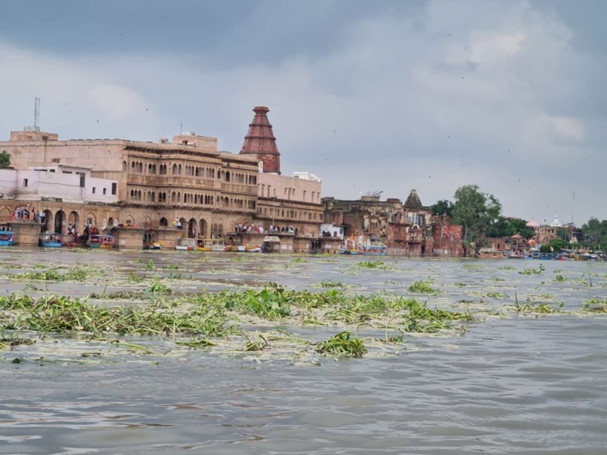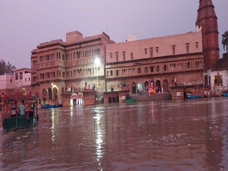 मथुरा : – भगवान श्री कृष्ण की नगरी में यमुना ने अपना कहर बरपाना शुरू कर दिया है। सैकड़ो सालों बाद एक बार फिर मथुरा -वृन्दावन में चारों ओर सिर्फ पानी ही पानी नजर आ रहा है। भगवान श्री कृष्ण और उनकी लीला से जुड़े तमाम स्थलों में पानी का सैलाब नजर आता है। प्रसिद्ध गोवर्धन पर्वत भी जलमग्न है। सिर्फ साधु -संत ही नहीं आम भक्त भी हैरत में है, उन्होंने जीते जी कभी यमुना नदी का यह रूप नहीं देखा था। शास्त्रों और बुजुर्गो से यमुना के रौद्र रूप की चर्चा जिन लोगो ने देखी सुनी थी, वही नजारा इन दिनों प्रकृति दोहरा रही है। बीते 24 घंटे में यमुना का जलस्तर 166.40 मीटर से 16 सेंटीमीटर अधिक दर्ज किया गया है, जोकि खतरे के निशान 166 मीटर से 56 सेंटीमीटर अधिक है। अभी जलस्तर में और बढ़ोत्तरी दर्ज की जा सकती है। इसको लेकर हाई अलर्ट है। जबकि शहर से लेकर गाँव तक दर्जनों इलाक़े टापू में तब्दील हो गए है।