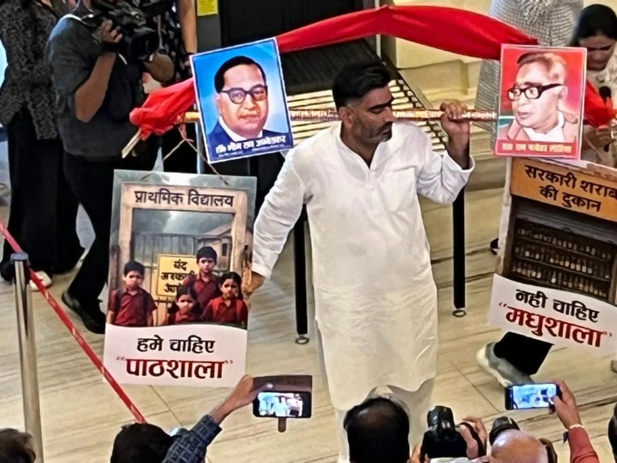 सपा विधायक अतुल प्रधान मानसून सत्र में एक अनोखी कांवड़ लेकर पहुंचे। उनके कंधे पर जो कांवड़ थी, उसमें एक तरफ सरकार स्कूल व बच्चों की तस्वीर लटक रही थी। दूसरी तरफ सरकारी शराब की दुकान की तस्वीर लटक रही थी। वहीं ऊपर डंडे पर बाबा साहेब और राम मनोहर लोहिया की तस्वीर लगा रखी थी। सपा विधायक सचिन यादव भी एक खास तरह की ड्रेस पहनकर विधानसभा पहुंचे। जो चर्चा का विषय बनी रही। उनके काले रंग के कुर्ते में बेरोजगारी, भ्रष्टाचार, आत्महत्या जैसे शब्द लिखे थे। उन्होंने डिग्री लिखा एक कागज अपने हाथ में फोल्ड करके ले रखा था। उनकी ड्रेस वैसी ही थी, जब कोई छात्र अपनी डिग्री लेने विवि जाते समय पहनता है। इस तरह की ड्रेस पहनकर उन्होंने अनोखे अंदाज में सरकार के प्रति अपना विरोध जताया।